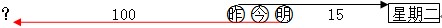 将“昨天”之后的第15天--星期二作为初试日期,画图,从图中可以看出所求日期与初始日期相隔100+15-2=113天,113除以7余数为1,所以所求日期为初始日期往前推1天,即星期一(所求日期在初始日期的过去,所以往前推)。